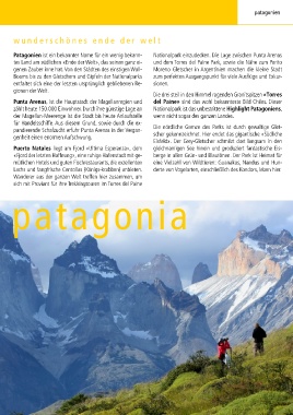 tes Land am südlichen «Ende der Welt», das seinen ganz ei- und dem Torres del Paine Park, sowie die Nähe zum Perito