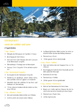 • Übernachtung in Trailanqui oder im Nationalpark • Fahrt nach Valdivia über den Panguipulli See zur Pa-