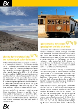 doch nur drei Autostunden von Iquique entfernt: der Natio- Danach durchqueren Sie auf dem Weg zu den Geoglyphen