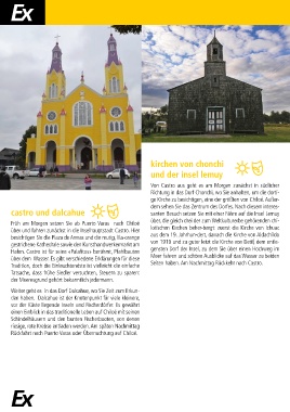 über und fahren zunächst in die Inselhauptstadt Castro. Hier lotischen Kirchen beher-bergt: zuerst die Kirche von Ichuac