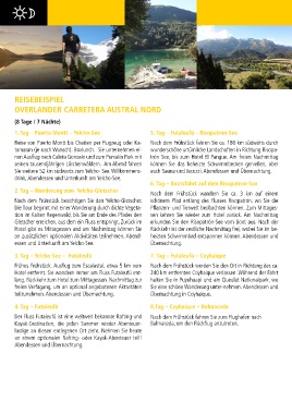 Hotel entfernt. Sie wandern immer am Fluss Futaleufú ent- 240 km entfernten Coyhaique verlassen. Während der Fahrt