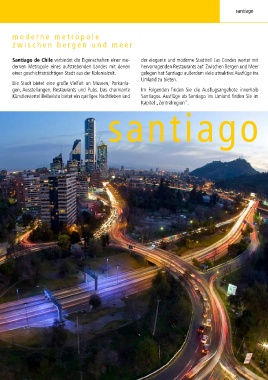 Santiago de Chile verbindet die Eigenschaften einer mo- der elegante und moderne Stadtteil Las Condes wartet mit