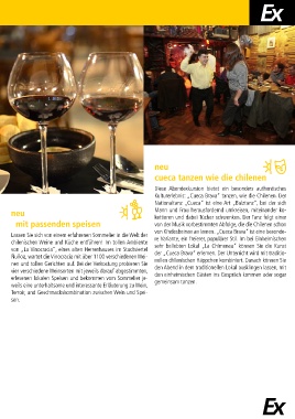 Ñuñoa, wartet die Vinocracia mit über 1100 verschiedenen Wei- der „Cueca Brava“ erlernen. Der Unterricht wird mit traditio-