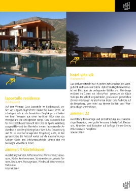 für ihre Gästehäuser bewußt den Clos de Apalta Weinberg chige Rezeption, zwei große Terrassen, Infi nity-Pool, Restau-