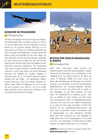 zusätzlich an ihrem roten Kamm und weißer Halskrause Magellanpinguinen und vielen andere Vogelarten, darunter