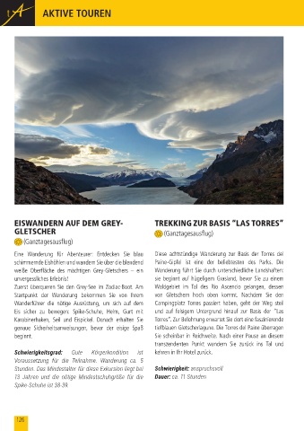 Karabinerhaken, Seil und Eispickel. Danach erhalten Sie Torres“. Zur Belohnung erwartet Sie dort eine faszinierende