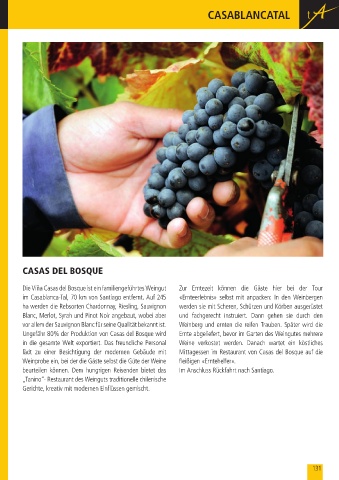 im Casablanca-Tal, 70 km von Santiago entfernt. Auf 245 «Ernteerlebnis» selbst mit anpacken: In den Weinbergen