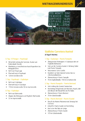• Abgabe des Mietwagens am Flughafen Balmaceda • 70 km Schotterstraße