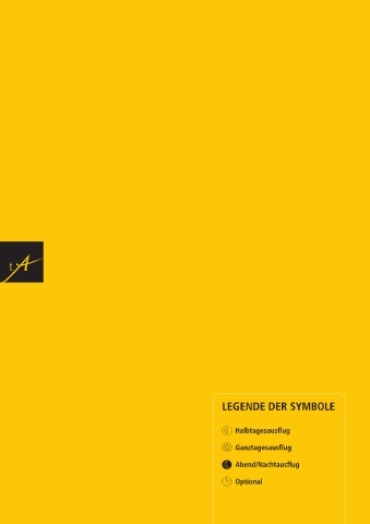 LEGENDE DER SYMBOLE Halbtagesausflug Ganztagesausflug Abend/Nachtausflug Optional
