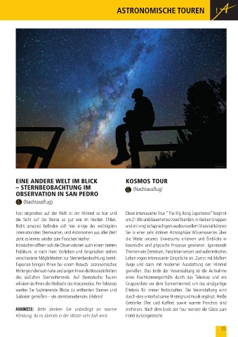die Sicht auf die Sterne so gut wie im Norden Chiles. um 21 Uhr und dauert etwa zwei Stunden. In kleinen Gruppen