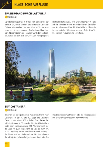 Besuchen Sie die spektakuläre Aussichtsplattform “Sky Präsidentenpalast “La Moneda“ oder das Nationalstadion,