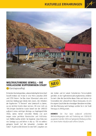Sewell inmitten der Anden in einer Höhe zwischen 2000 genießen. In der Kupferminenstadt angekommen, erfahren