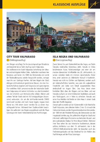 sichtspunkt fahren. Während Ihrer Stadtrundfahrt besich- Stadt Valparaiso, dem ältesten Hafen Chiles. Es ist auch die